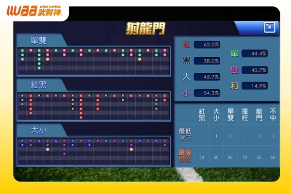 - 適當分散下注:同時下注「射中龍門」與「紅黑」可提高命中率。